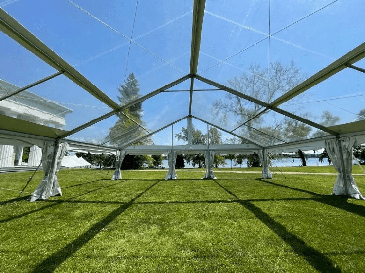 - The Ultimate 40x96 Clearspan Experience: With a 40-foot width and 96-foot length, this structure features zero center poles or support columns, providing a fully open, panoramic view of your surroundings. Its clear roof panels are designed for both day-lit events and stunning evening, star-gazing ambiance, acting as a "WOW" factor for weddings, galas, and upscale events.