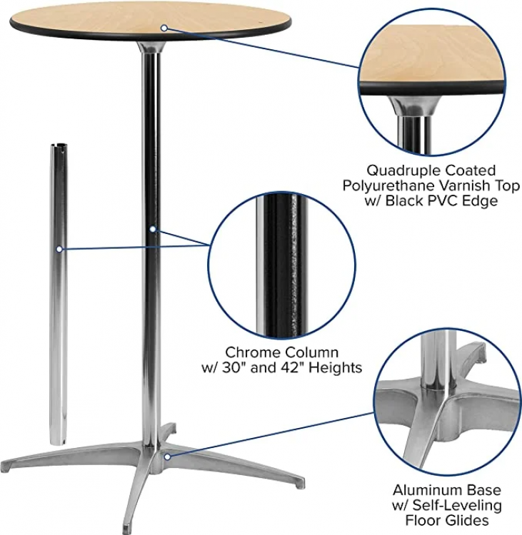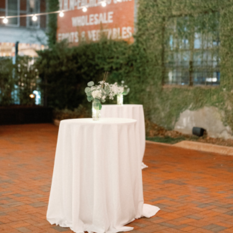 Add elegance to your wedding reception with our Tall Cocktail Table (42" H). This high-top table is perfect for guests to mingle while enjoying drinks, making it an essential part of your wedding table rentals.
