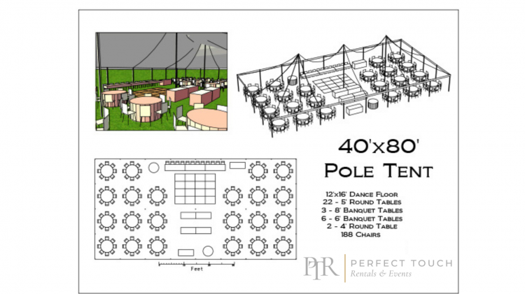 - Available widths from 16’ to 40’, the Pole Tent will work in almost any location that can be staked